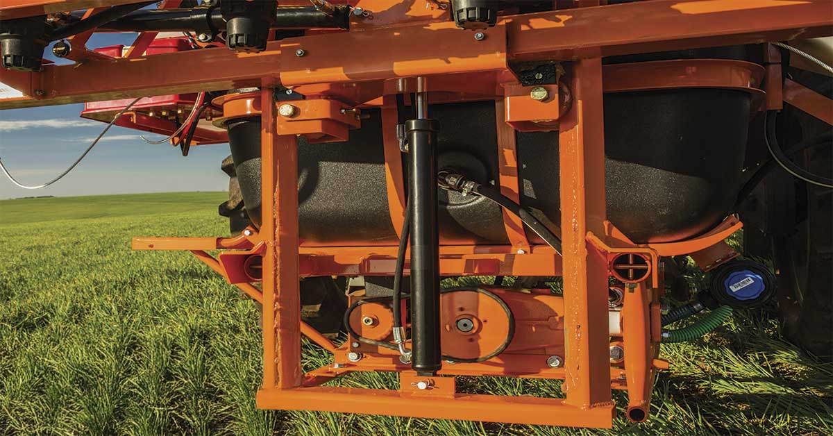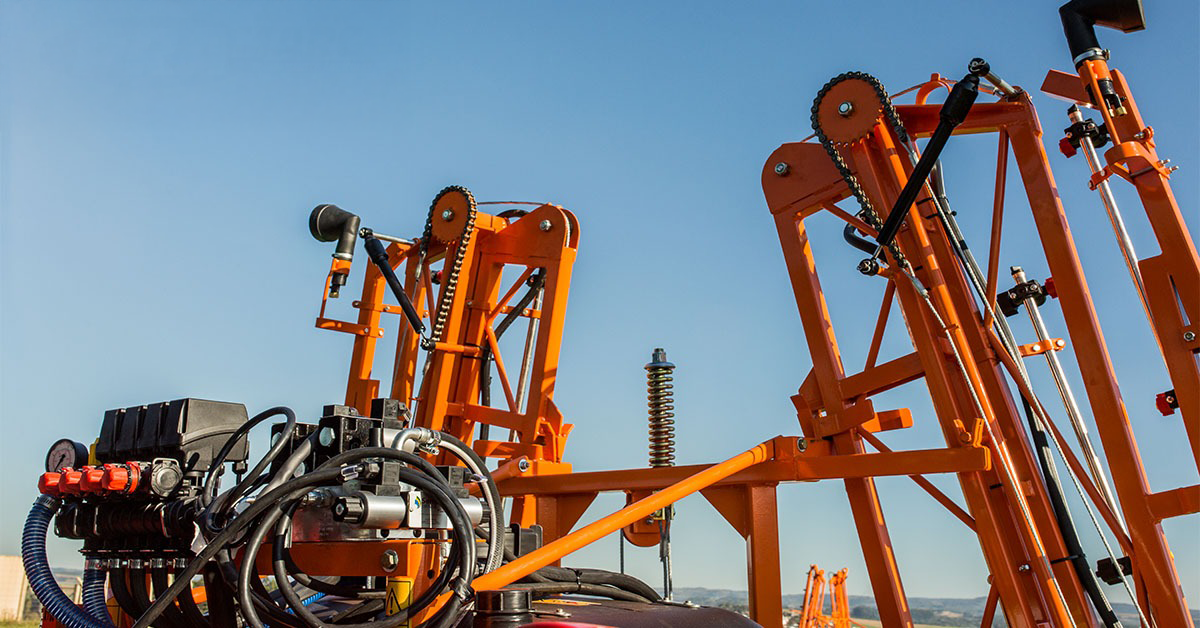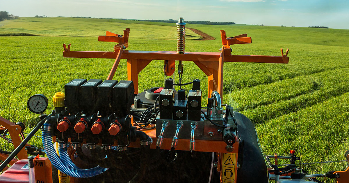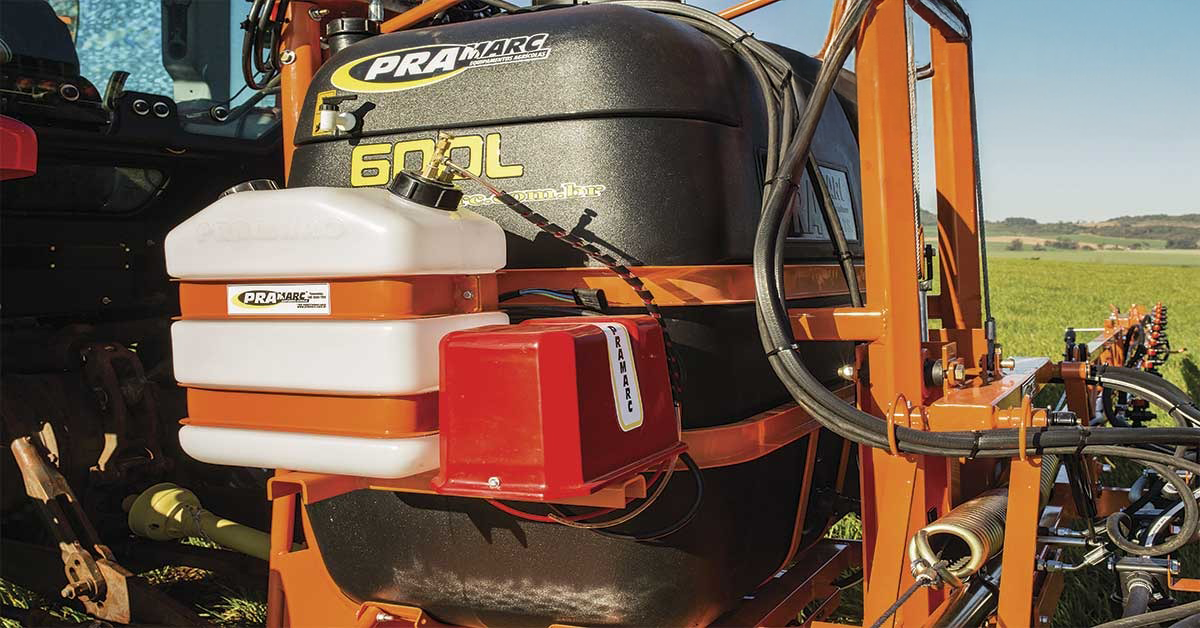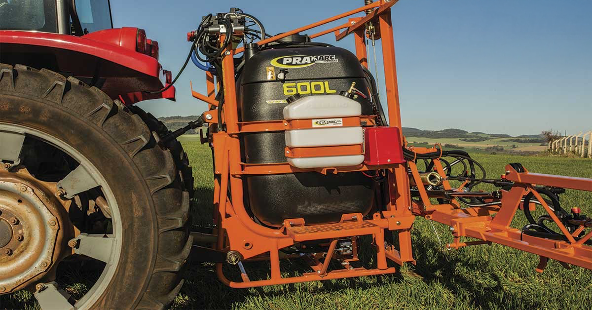 Pulverizador Pramarc com tanque em polietileno com capacidade para 600 litros de água com reservatorio de água limpa água, tubos do chassis reforçados.